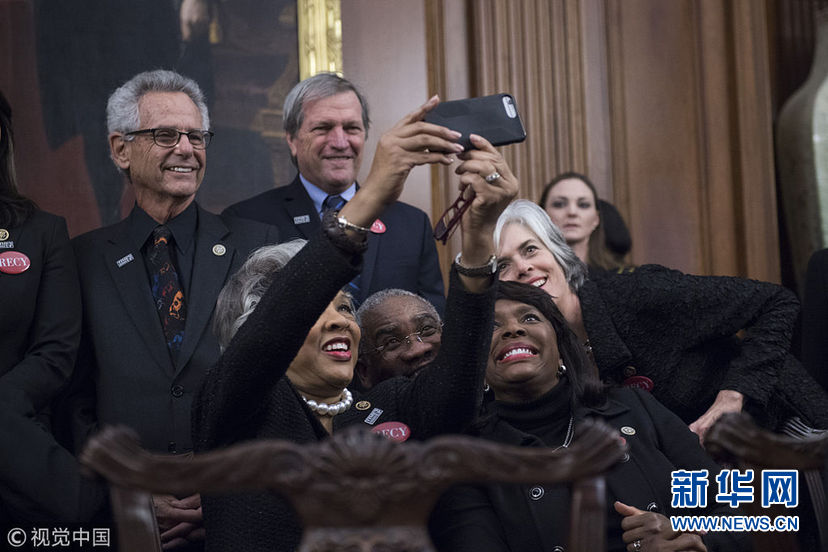 當(dāng)?shù)貢r(shí)間1月30日,美國(guó)華盛頓,民主黨國(guó)會(huì)議員和性侵幸存者一同穿黑衣現(xiàn)身國(guó)會(huì)大廈,聲援勇敢反對(duì)性騷擾和歧視的人們。眾議院民主黨人計(jì)劃穿黑衣出席特朗普的國(guó)情咨文演講,支持MeToo和TimesUp組織。 (圖片來(lái)源:視覺中國(guó))
