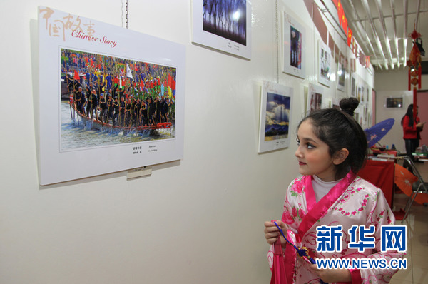 一名學(xué)生在欣賞“中國(guó)故事”圖片展。新華網(wǎng)發(fā)(李良勇攝)