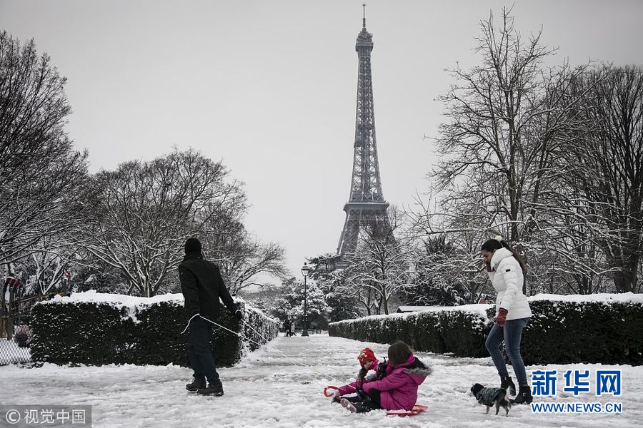 2月7日,法國巴黎,巴黎被積雪覆蓋。(圖片來源:視覺中國)