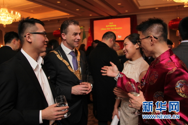 2月8日, 在愛爾蘭首都都柏林, 中愛嘉賓在中國駐愛爾蘭使館舉辦的春節(jié)招待會(huì)上交談。新華網(wǎng)發(fā)(張琪攝)