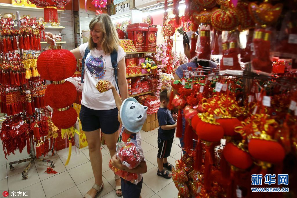 當(dāng)?shù)貢r間2018年2月11日,馬來西亞吉隆坡,中國農(nóng)歷新年將至,當(dāng)?shù)啬曦浭袌黾t火。(圖片來源:東方IC)