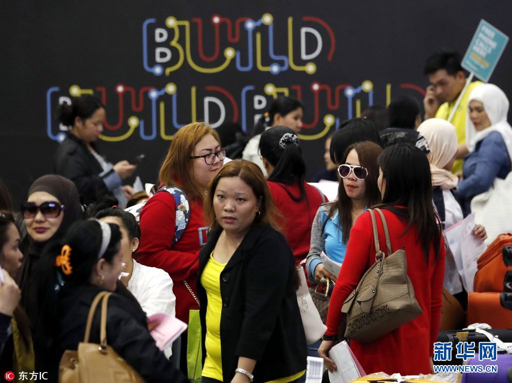 當?shù)貢r間2018年2月21日,菲律賓馬尼拉,從科威特返回的菲律賓海外勞工抵達馬尼拉國際機場。據(jù)外媒報道,宿霧太平洋航空公司為至少396名海外菲律賓工人提供空運支持,助其免費搭乘飛機回家。據(jù)悉,菲律賓政府已下令禁止民眾前往科威特務工。據(jù)悉,菲律賓總統(tǒng)杜特爾特稱,近來有在科威特打工的菲律賓女傭因不堪虐待或性侵選擇自殺。(圖片來源: 東方IC)