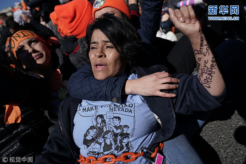 當(dāng)?shù)貢r(shí)間2018年3月5日,美國華盛頓,移民活動(dòng)家在國會(huì)山舉行集會(huì),抗議特朗普終結(jié)“夢(mèng)想法案”計(jì)劃。(圖片來源:視覺中國)