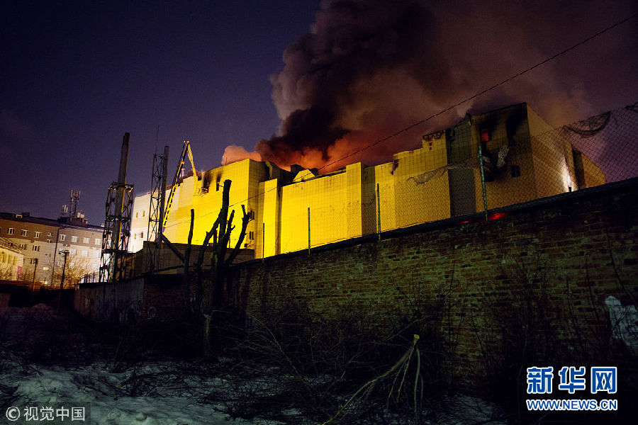 當(dāng)?shù)貢r(shí)間2018年3月25日,俄羅斯西西伯利亞南部城市克麥羅沃一家購物中心發(fā)生重大火災(zāi)。據(jù)俄緊急情況部26日發(fā)布的消息,大火已造成64人死亡。(圖片來源:視覺中國)