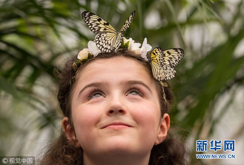 3月28日,英國(guó)倫敦自然歷史博物館舉辦奇異蝴蝶展,各式美麗新奇的蝴蝶翩翩飛舞,吸引了前來參觀的兒童與之親密接觸。(圖片來源:視覺中國(guó))