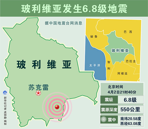圖表:玻利維亞發(fā)生6.8級(jí)地震 新華社記者 孟麗靜 編制