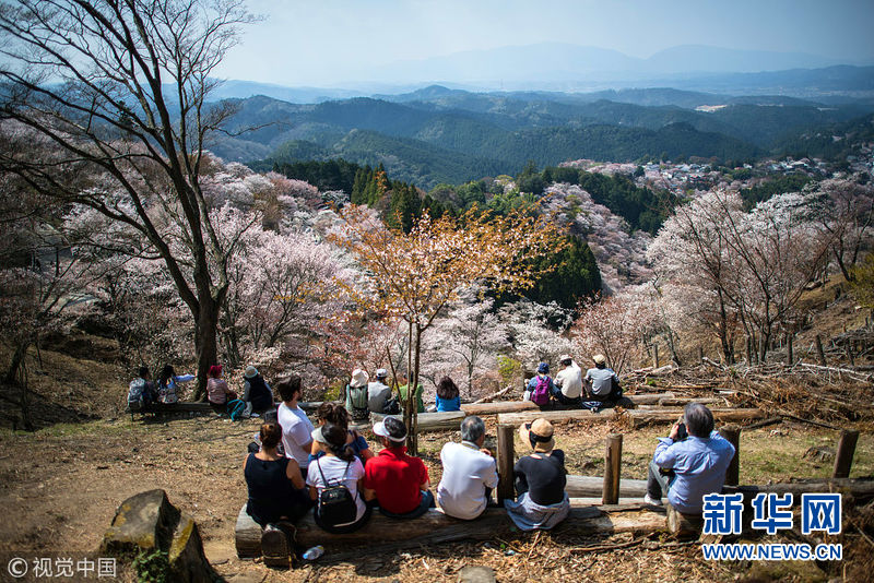 4月3日,日本奈良吉野,當(dāng)?shù)貦鸦ㄊ⒎牛姸嘤慰颓皝?lái)觀賞。(圖片來(lái)源:視覺(jué)中國(guó))