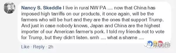 ?。ň幷咦ⅲ何易≡谫e州西北部農(nóng)村…中國準備對我們的產(chǎn)品加征關(guān)稅,曾支持特朗普的農(nóng)民會再次受傷……我告訴過我的朋友不要給特朗普投票,但他們不聽。哎,太無語了……)