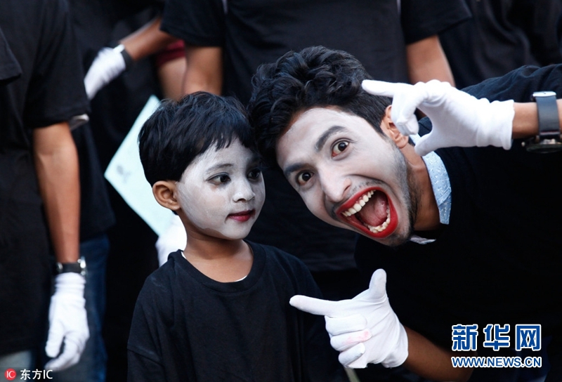 當?shù)貢r間2018年4月8日,孟加拉國達卡,2018年國際啞劇節(jié)在達卡開幕,超過254名啞劇演員齊聚達卡大學參加表演,成為全世界啞劇演員最多的表演節(jié)目,破吉尼斯世界紀錄。(圖片來源:東方IC)