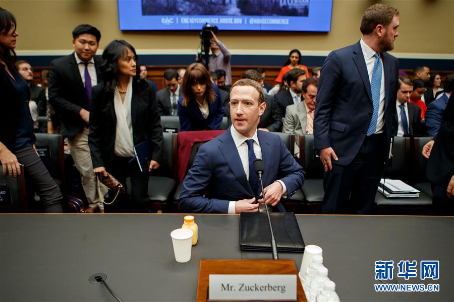 4月11日,在美國華盛頓,美社交媒體平臺臉書公司首席執(zhí)行官馬克·扎克伯格出席眾議院聽證會。新華社發(fā)(沈霆攝)