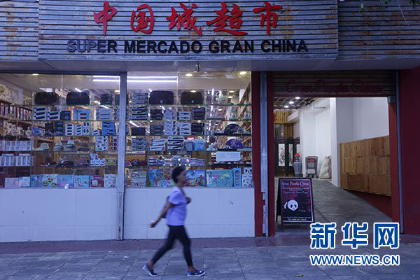 5月1日,在多米尼加共和國首都圣多明各,行人經(jīng)過“中國城”的一家超市。新華社發(fā)(羅伯托·古斯曼 攝)