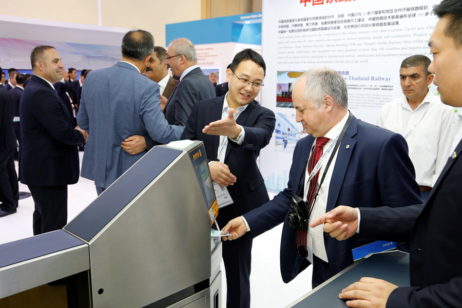 5月8日,在土耳其安卡拉,觀眾在國際高鐵大會上體驗中國鐵路檢票閘機(jī)。新華社記者 秦彥洋 攝