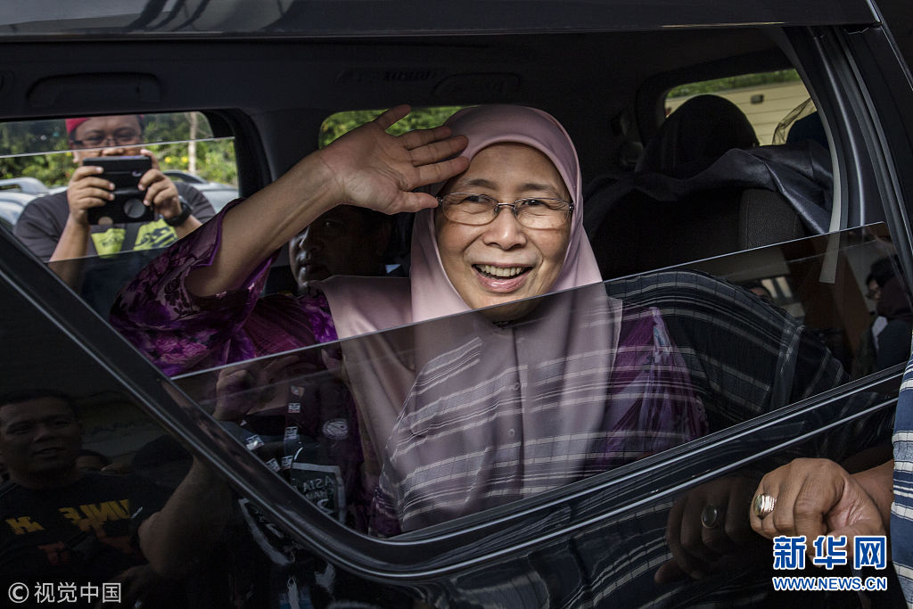 當?shù)貢r間2018年5月11日,馬來西亞吉隆坡,馬來西亞前副總理安瓦爾的夫人Wan Azizah探視獄中的丈夫。馬來西亞新當選總理馬哈蒂爾表示,最高元首已經(jīng)同意特赦前副總理安瓦爾。