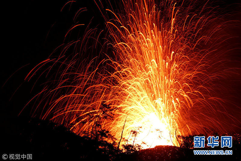 夏威夷火山持續(xù)噴發(fā) 熔巖噴涌火星四濺