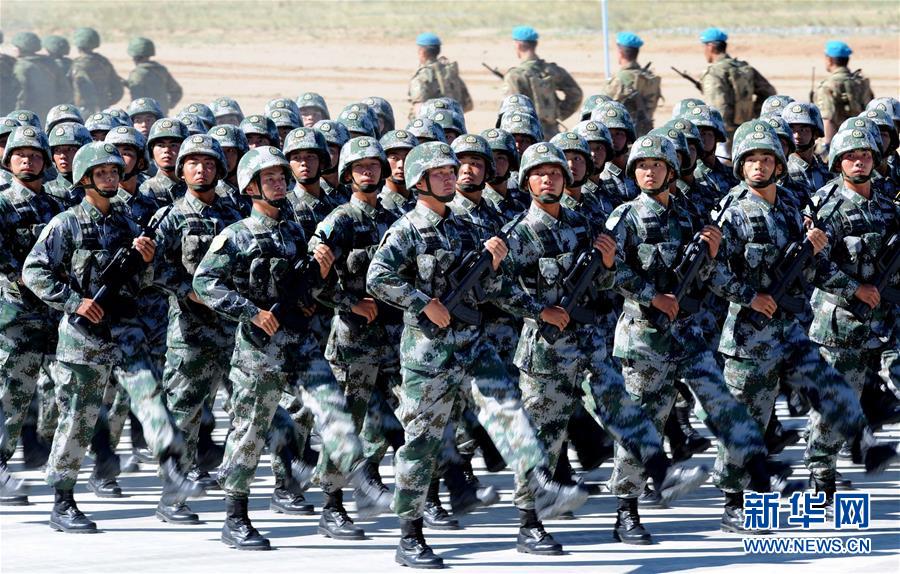 2014年8月24日,中國人民解放軍參演部隊(duì)在“和平使命—2014”上海合作組織成員國武裝力量聯(lián)合反恐軍事演習(xí)開始儀式上舉行分列式。17歲,恰如風(fēng)華正茂的青年。自世紀(jì)之初誕生于上海黃浦江畔,上海合作組織走過一段不平凡的發(fā)展歷程,和平穩(wěn)定能力不斷增強(qiáng)、發(fā)展動(dòng)能不斷涌現(xiàn)、影響力不斷提升,邁入蓬勃發(fā)展新階段。17載風(fēng)雨同舟,上合組織走出了一條相互尊重、公平正義、合作共贏的新型國際關(guān)系之路。初夏6月,上合組織成員國元首理事會(huì)第十八次會(huì)議將在中國海濱城市青島舉行。弘揚(yáng)“上海精神”、總結(jié)成功經(jīng)驗(yàn)、共同規(guī)劃未來、推動(dòng)擴(kuò)員后的上合組織加強(qiáng)新老成員間的合作,青島峰會(huì)必將成為上合組織發(fā)展史上一座新的里程碑,續(xù)寫這一新型區(qū)域組織的新篇章。新華社記者 張領(lǐng) 攝