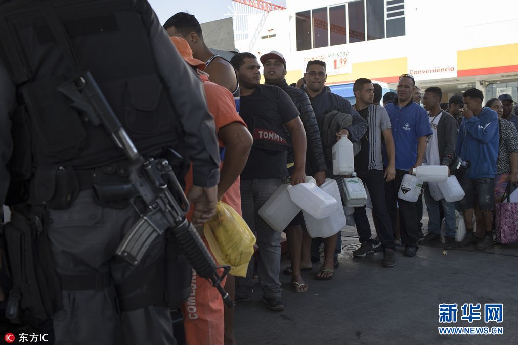 5月28日,巴西里約,巴西全國(guó)卡車司機(jī)罷工持續(xù)長(zhǎng)達(dá)一周,導(dǎo)致燃料和食品短缺,民眾排隊(duì)購(gòu)買汽油。(圖片來(lái)源:東方IC)