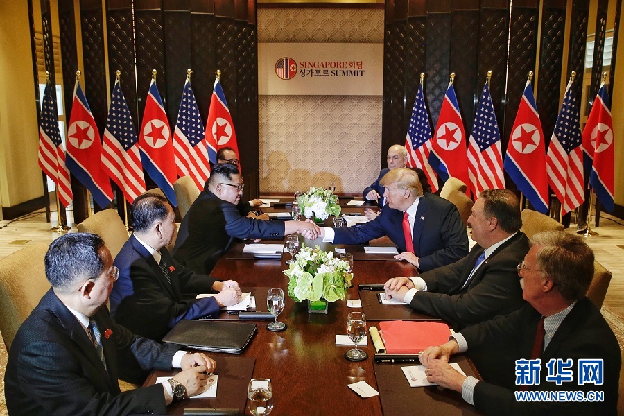 長(zhǎng)期敵對(duì)的朝美兩國(guó)當(dāng)天舉行首次領(lǐng)導(dǎo)人會(huì)晤,就朝鮮半島無核化及和平機(jī)制構(gòu)建等事務(wù)展開磋商。