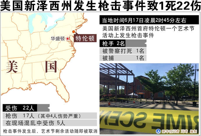 新華社華盛頓6月17日電(記者劉陽(yáng) 孫丁)美國(guó)新澤西州首府特倫頓17日凌晨發(fā)生槍擊事件,一名槍手被打死,另有22人受傷。