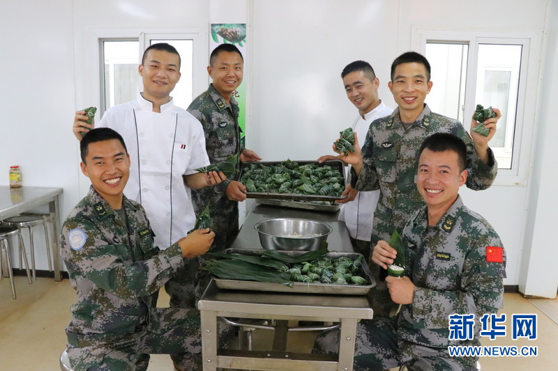 “官兵們在遠離祖國和親人的異國他鄉(xiāng)執(zhí)行維和任務,在端午節(jié)能夠吃到粽子是官兵們的共同心愿?!贝妒掳嚅L彭照陽一邊包著粽子,一邊欣喜地對記者說。