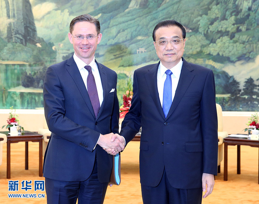 6月25日,國務(wù)院總理李克強(qiáng)在北京人民大會(huì)堂會(huì)見來華出席第七次中歐經(jīng)貿(mào)高層對(duì)話的歐盟委員會(huì)副主席卡泰寧。 新華社記者 姚大偉 攝