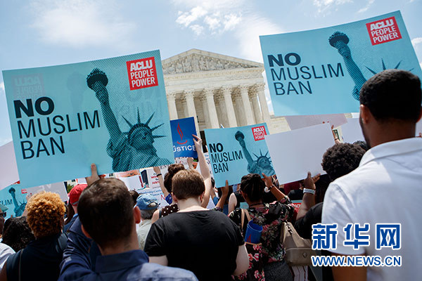 新華社快訊:美國最高法院26日裁決支持總統(tǒng)特朗普針對(duì)一些中東非洲國家的移民限制令。2018-06-26 22:51:21