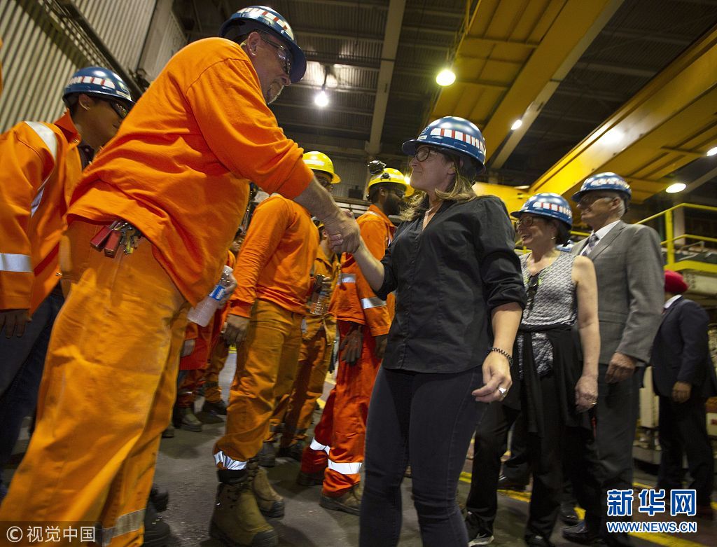 當(dāng)?shù)貢r(shí)間2018年6月29日,加拿大漢密爾頓,加拿大外交部長(zhǎng)弗里蘭、經(jīng)濟(jì)發(fā)展部長(zhǎng)貝恩斯和勞工部長(zhǎng)哈伊杜造訪斯特爾科鋼鐵公司,并共同宣布從7月1日起,加拿大將對(duì)約126億美元從美國(guó)進(jìn)口的商品加征關(guān)稅,以報(bào)復(fù)特朗普政府對(duì)加拿大鋼鋁產(chǎn)品加征關(guān)稅。他們還表示,加拿大政府將向本國(guó)鋼鋁產(chǎn)業(yè)和制造業(yè)提供約15億美元財(cái)政援助。(圖片來(lái)源:視覺(jué)中國(guó))
