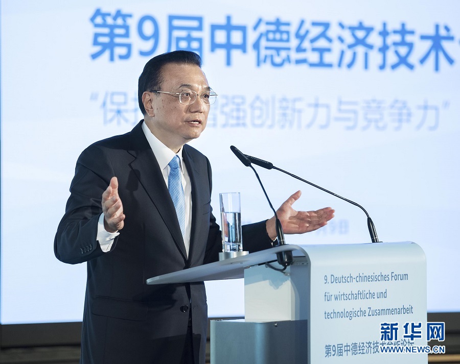 李克強(qiáng)表示,中德合作保持全面穩(wěn)定健康發(fā)展態(tài)勢(shì),長期引領(lǐng)中歐合作,堪稱大國合作的典范,為兩國乃至世界經(jīng)濟(jì)發(fā)展注入了動(dòng)力。習(xí)近平主席去年對(duì)德國進(jìn)行成功訪問,同德方領(lǐng)導(dǎo)人共同規(guī)劃兩國關(guān)系發(fā)展。我與默克爾總理今天共同主持第五輪中德政府磋商,達(dá)成重要共識(shí)。我們一致同意繼續(xù)鞏固和提升政治互信,夯實(shí)中德全方位戰(zhàn)略伙伴關(guān)系的基礎(chǔ),推動(dòng)兩國合作向更高水平邁進(jìn),以中德合作的確定性、維護(hù)多邊主義的一貫性為世界和平與發(fā)展增添穩(wěn)定性。