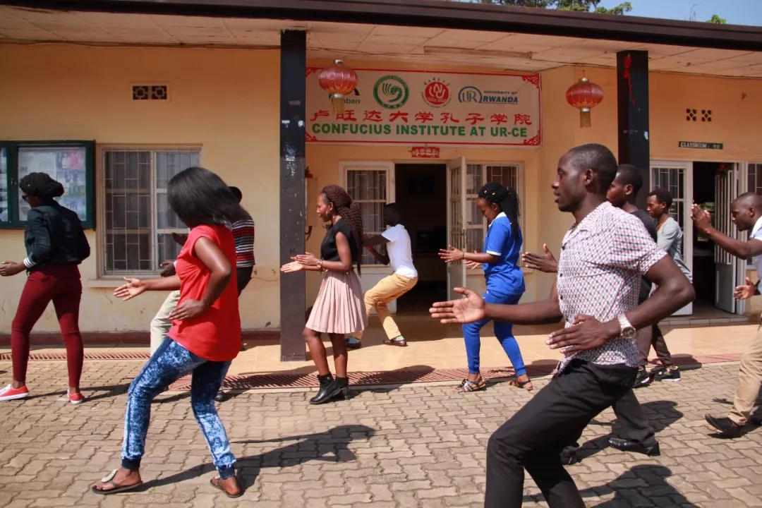 來到盧旺達大學(xué)孔子學(xué)院,正趕上老師們帶領(lǐng)參加暑期班的同學(xué)們在操場上打太極拳。一招一式,頗有章法。