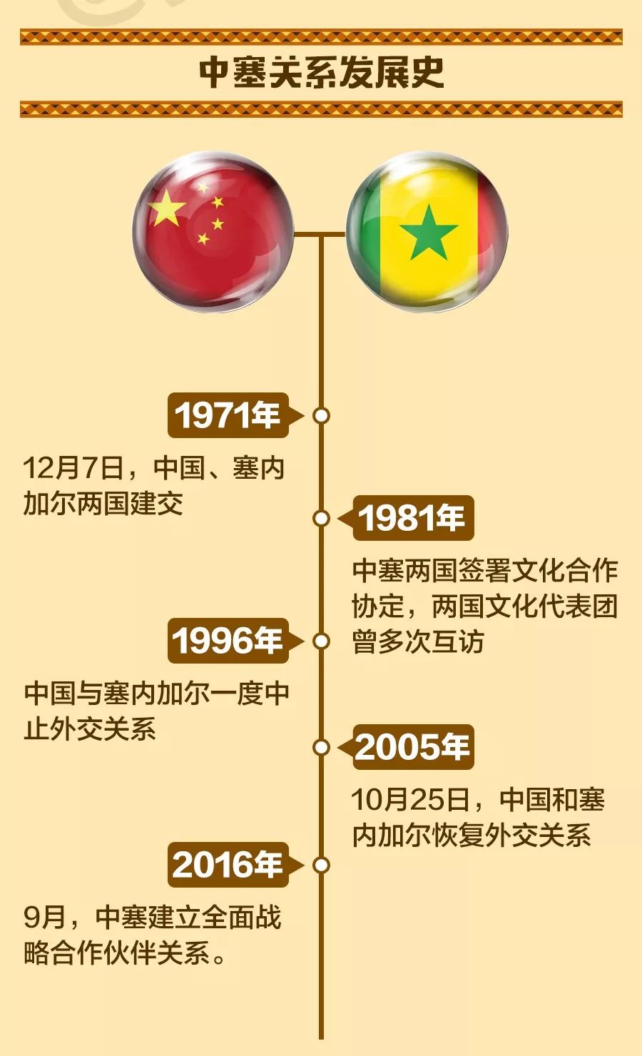 會(huì)談開始前,薩勒總統(tǒng)和塞內(nèi)加爾民眾為習(xí)近平舉行了隆重?zé)崃业挠觾x式。當(dāng)習(xí)近平乘車駛向總統(tǒng)府時(shí),早已等候在沿途的萬余名當(dāng)?shù)孛癖娚碇?jié)日盛裝,或揮舞中塞兩國國旗,或擊鼓鳴樂,載歌載舞,熱情歡呼,夾道歡迎。通向總統(tǒng)府的共和國大道上,禮賓馬隊(duì)迎接護(hù)衛(wèi)習(xí)近平。駿馬威武矯健,踏樂前行。抵達(dá)總統(tǒng)府后,習(xí)近平檢閱儀仗隊(duì)。薩勒在總統(tǒng)府樓前迎接。兩國元首親切握手,合影留念。