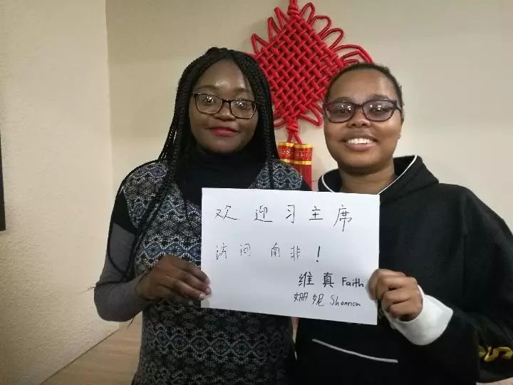 “雖然中文學(xué)起來(lái)很有挑戰(zhàn)性,但這也恰恰是吸引我的原因?!眾櫮莺屯榫S真向記者驕傲地展示她們書寫的漢字:歡迎習(xí)主席訪問(wèn)南非!