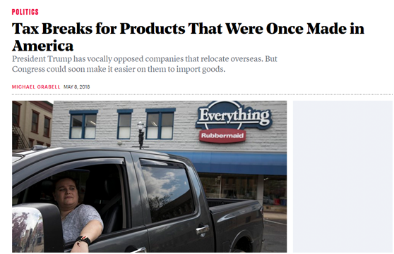 這方面,美國(guó)的《大西洋月刊》倒是在今年5月美國(guó)對(duì)華貿(mào)易戰(zhàn)開(kāi)打前有所關(guān)注。當(dāng)時(shí)這家媒體認(rèn)為,這個(gè)法案展現(xiàn)了美國(guó)當(dāng)下貿(mào)易政策的一種矛盾:一方面美國(guó)國(guó)會(huì)兩黨都希望給大企業(yè)進(jìn)一步減輕關(guān)稅壓力——甭管他們的產(chǎn)品到底是哪兒生產(chǎn)的;可另一方面美國(guó)總統(tǒng)特朗普卻多次表示要懲罰把工廠(chǎng)搬到美國(guó)境外的企業(yè)。