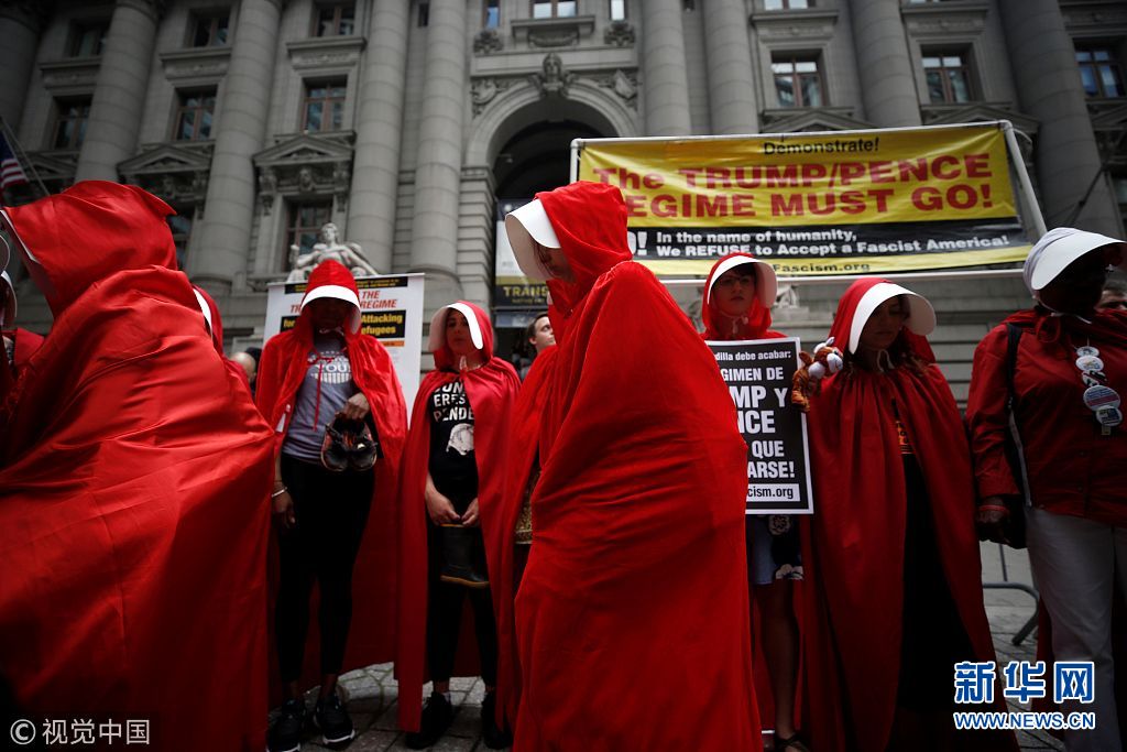 紐約:女性化身美劇中“使女”抗議特朗普 持鞋子聲援移民兒童(組圖)