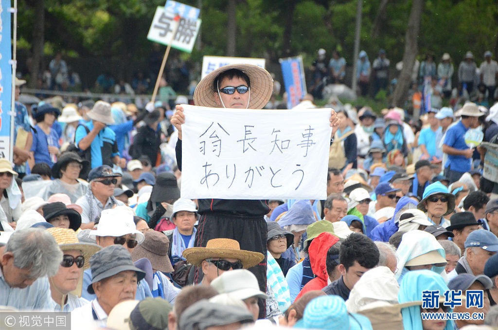 當(dāng)?shù)貢r(shí)間2018年8月11日,日本沖繩縣約7萬民眾8月11日在那霸市舉行大規(guī)模集會,反對駐日美軍將普天間基地遷往名護(hù)市邊野古地區(qū),要求駐日美軍放棄在邊野古地區(qū)新建基地并立即關(guān)閉普天間機(jī)場。當(dāng)天,日本東京都、大阪府、福岡、北海道縣等地民眾也同時(shí)舉行集會和游行,抗議日本政府推進(jìn)邊野古地區(qū)填海施工。(圖片來源:視覺中國)