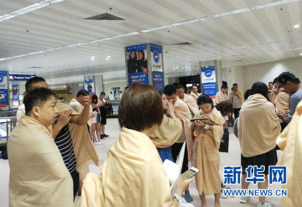 8月17日凌晨,乘坐廈航客機的乘客在飛機降落后在菲律賓馬尼拉機場等候。 新華社發(fā)