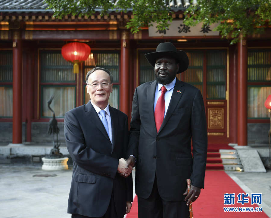 8月31日,國家副主席王岐山在北京釣魚臺(tái)國賓館會(huì)見來華出席中非合作論壇北京峰會(huì)的南蘇丹總統(tǒng)基爾。新華社記者 高潔 攝