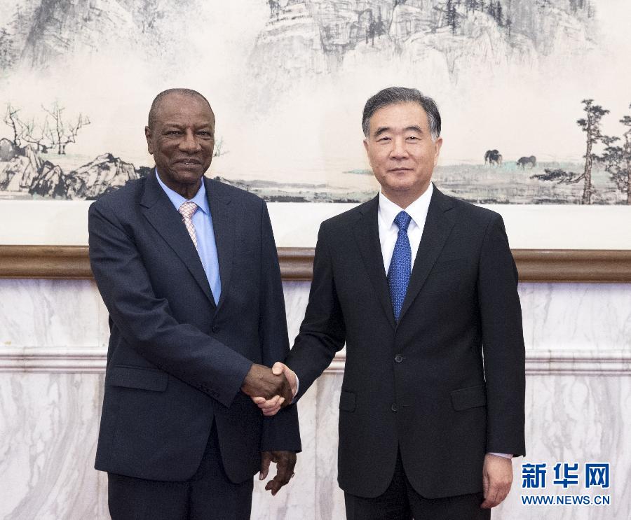 9月1日,全國(guó)政協(xié)主席汪洋在北京釣魚臺(tái)國(guó)賓館會(huì)見幾內(nèi)亞總統(tǒng)孔戴。 新華社記者王曄攝
