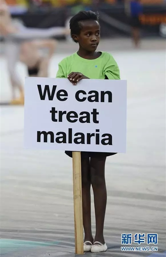 在南非約翰內(nèi)斯堡,一名女孩手舉抗擊瘧疾的標(biāo)語牌。新華社/法新