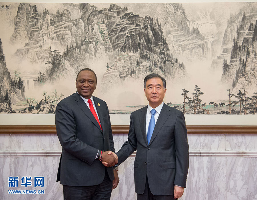 9月4日,全國(guó)政協(xié)主席汪洋在北京釣魚臺(tái)國(guó)賓館會(huì)見肯尼亞總統(tǒng)肯雅塔。 新華社記者 翟健嵐 攝