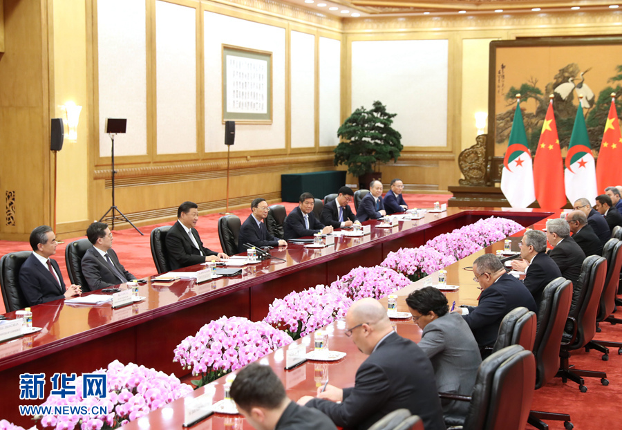 烏葉海亞表示,昨天,我向布特弗利卡總統(tǒng)報告了北京峰會的盛況。他讓我轉(zhuǎn)達對習(xí)近平主席的熱烈祝賀以及對中國支持非洲的衷心感謝。烏葉海亞表示,阿中關(guān)系歷史悠久。阿爾及利亞在爭取民族獨立和實現(xiàn)國家發(fā)展中得到中方寶貴支持,雙方在國際事務(wù)中一直緊密配合。阿方贊賞并支持北京峰會提出的中非合作新舉措,愿以此次雙方簽署“一帶一路”合作協(xié)議為契機,深化雙方務(wù)實合作。