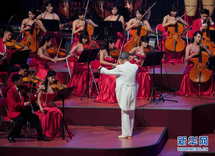 9月8日,演員在表演節(jié)目。當(dāng)日,朝鮮在平壤體育館舉行國慶文藝演出。 新華社記者 邢廣利 攝