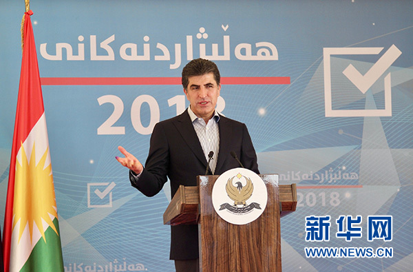9月30日,伊拉克庫爾德自治區(qū)(庫區(qū))政府總理內(nèi)奇爾萬·巴爾扎尼在埃爾比勒市投票后出席新聞發(fā)布會(huì)。 新華社發(fā)(亞瑟爾·賈瓦德 攝)