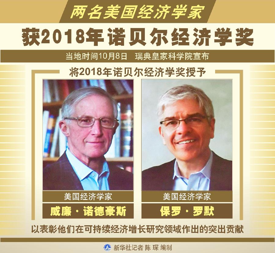 新華社斯德哥爾摩10月8日電(記者和苗 付一鳴)瑞典皇家科學(xué)院8日宣布,將2018年諾貝爾經(jīng)濟(jì)學(xué)獎(jiǎng)授予美國經(jīng)濟(jì)學(xué)家威廉·諾德豪斯和保羅·羅默,以表彰他們在可持續(xù)經(jīng)濟(jì)增長研究領(lǐng)域作出的突出貢獻(xiàn)。
