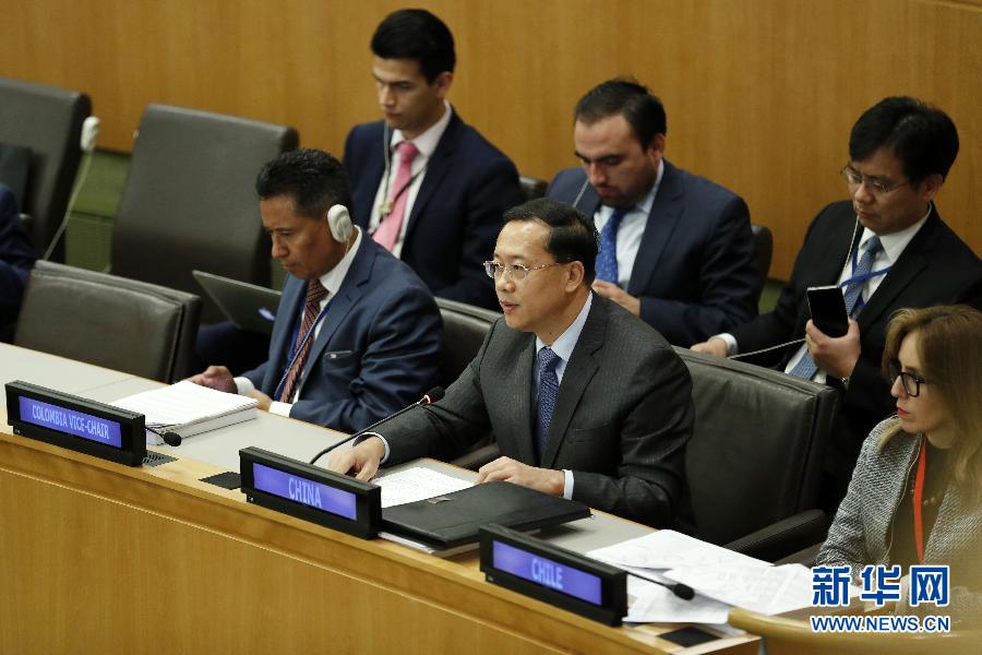 10月9日,在位于紐約的聯(lián)合國總部,中國常駐聯(lián)合國代表馬朝旭(前排中)在第73屆聯(lián)大第五委員會常會關(guān)于會議組織工作的會議上發(fā)言。 馬朝旭強(qiáng)調(diào),聯(lián)合國預(yù)算資金使用應(yīng)該更加重視全面績效管理。 新華社記者李木子攝