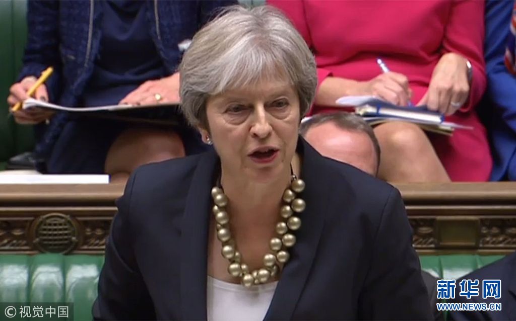 當地時間2018年10月22日,英國倫敦,英國首相特雷莎·梅在下議院向國會議員發(fā)表聲明,尋求脫歐戰(zhàn)略支持。特雷莎·梅稱盡管她再次拒絕了歐盟關于愛爾蘭邊界問題的提議,但堅信與歐盟的脫歐協(xié)議談判已經接近尾聲。(視頻截圖)(圖片來源:視覺中國)