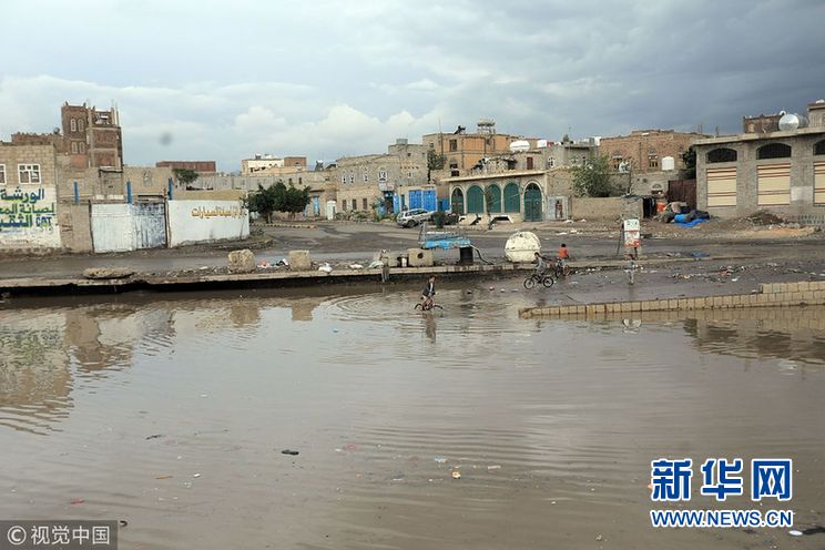 當?shù)貢r間2018年10月23日,也門薩那,連日暴雨導致街道積水嚴重。(圖片來源:視覺中國)