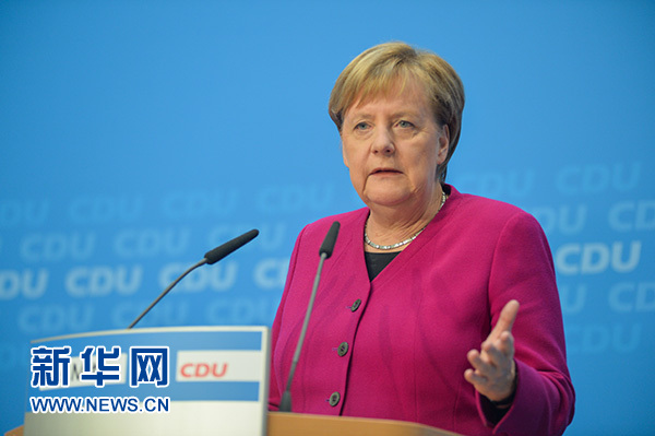 10月29日,在德國柏林,德國總理默克爾在基督教民主聯(lián)盟黨內(nèi)發(fā)布會(huì)上講話。新華社記者 連振 攝