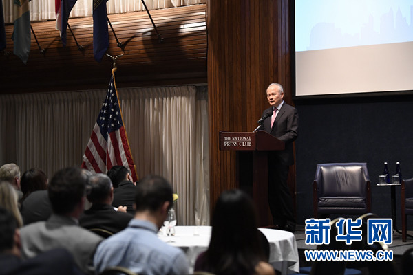 崔天凱當(dāng)天在美全國記者協(xié)會舉行的紀(jì)錄片《善良的天使》觀影活動上致辭說,許多人對近期中美關(guān)系形勢深感憂慮,在這充滿挑戰(zhàn)的時(shí)刻,中美關(guān)系發(fā)展更需要“善良的天使”。