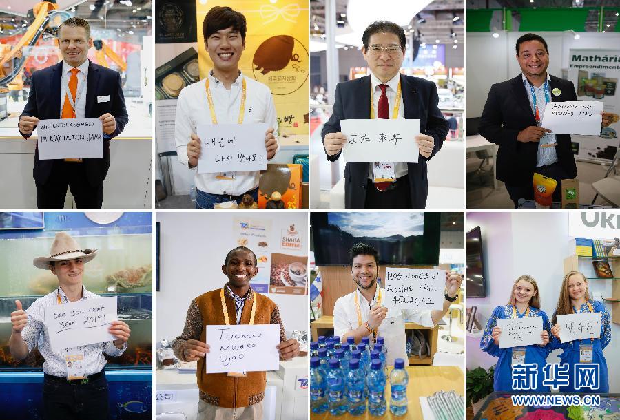 11月10日,進(jìn)博會上不同國家的參展人員展示用不同語言書寫的“明年見”(拼版照片)。 首屆中國國際進(jìn)口博覽會11月5日至10日在上海舉行。記者在采訪中了解到,很多參展商在進(jìn)博會上收獲了不少訂單,宣傳了自己的產(chǎn)品,結(jié)識了很多朋友。他們表示,希望明年再來進(jìn)博會。 新華社記者 侯東濤 攝