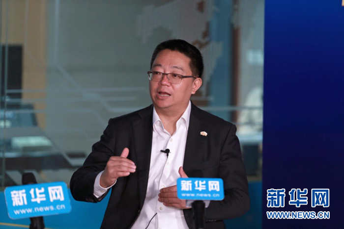圖為綠地商貿(mào)集團(tuán)董事長(zhǎng)、總經(jīng)理薛迎杰接受新華網(wǎng)獨(dú)家專(zhuān)訪(fǎng)。新華網(wǎng)嚴(yán)曉瑜攝