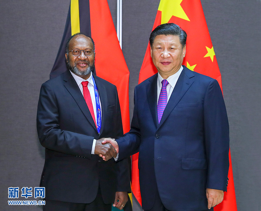 11月16日,國家主席習近平在莫爾茲比港分別會見建交太平洋島國領導人。這是習近平會見紐??偫硭?。 新華社記者 丁林 攝